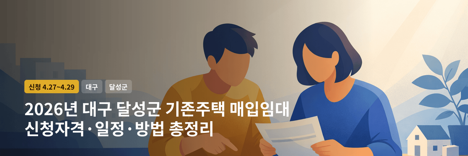 대구 달성군에서 LH가 기존주택을 매입하여 시중 시세의 30% 수준으로 임대하는 매입임대주택 예비입주자를 모집해요. 2026년 4월 15일 기준으로 달성군에 주민등록이 있는 무주택 가구가 신청할 수 있으며, 2년 계약 후 재계약이 가능해 최장 30년까지 거주할 수 있어요.