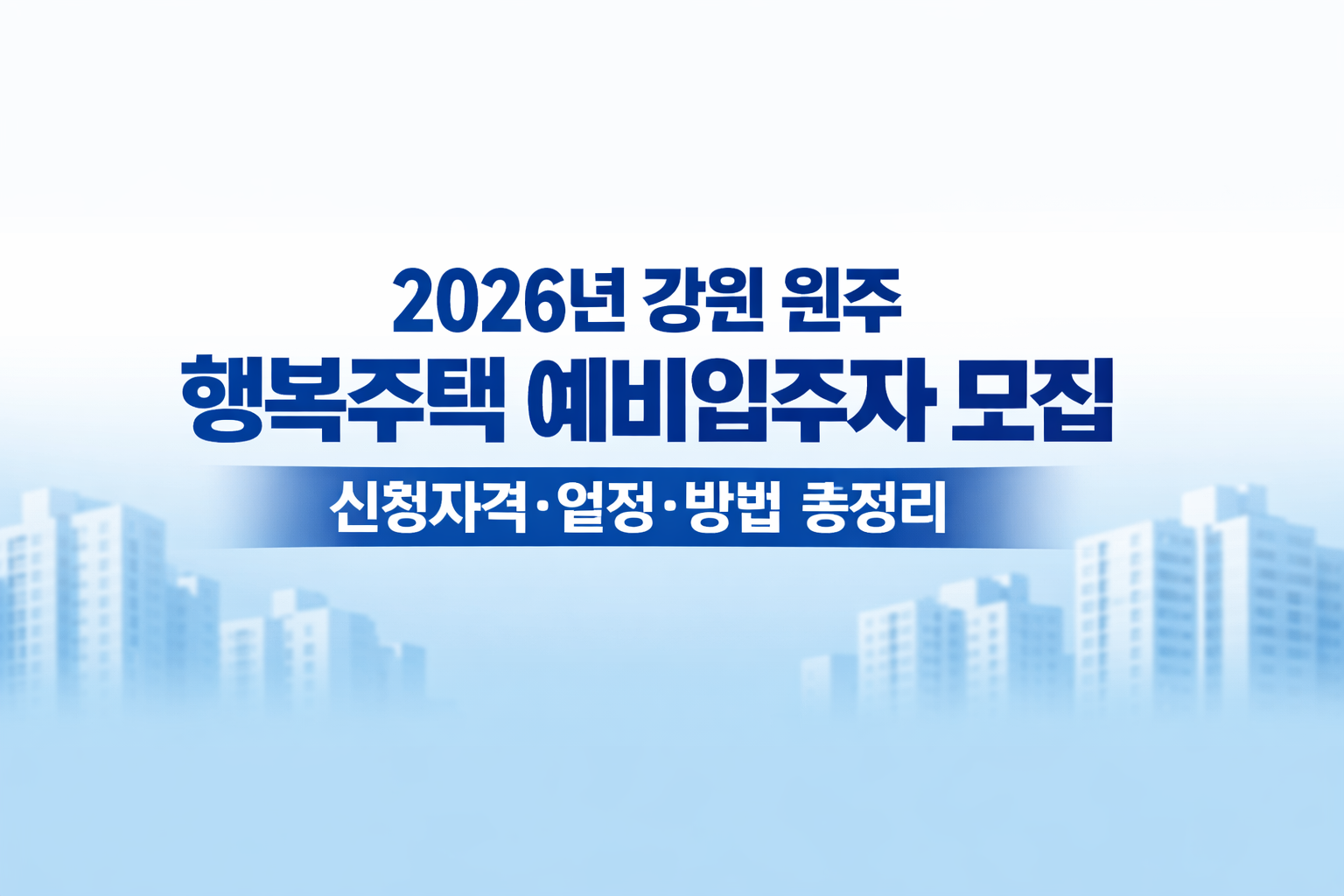 원주에서 행복주택 예비입주자를 모집해요. 대상은 대학생, 청년, 신혼부부·한부모, 고령자, 주거급여수급자예요. 공고일은 2026.04.15이고, 신청은 LH청약플러스(인터넷/모바일)로 해요.