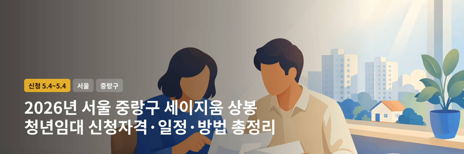 중랑구 상봉동에 있는 **세이지움 상봉(청년안심주택 공공지원민간임대)**에서 특별공급 1세대를 추가로 모집해요. 공고일 기준 만 19세~39세이고, **집이 없는 상태(무주택)**여야 해요. 상봉역 4번 출구(7호선) 가까운 역세권이라 교통 편한 편이에요.